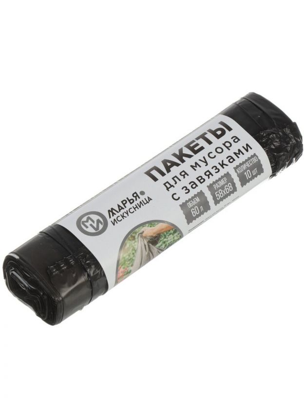 Пакеты для мусора 60 л, 10 шт, 20 мкм, с завязками, 580х680 мм, Марья Искусница, 5503, черные
