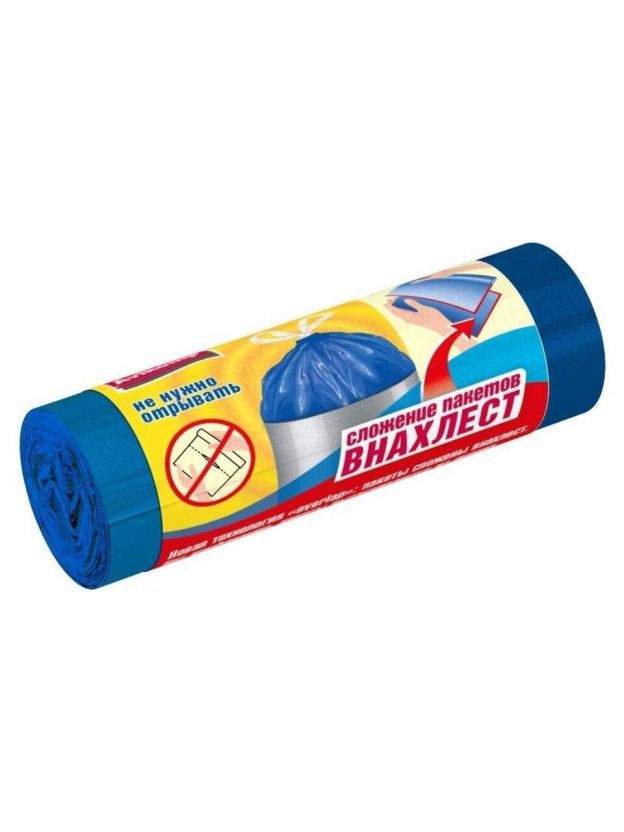Прорыв в технологии изготовления пакетов для мусора - пакеты для мусора внахлест. Пакеты сложены друг на друга со смещением, нет перфорации - пакеты вытягиваются из рулона.