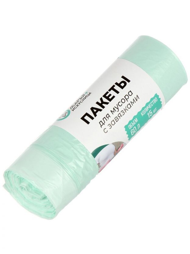 Пакеты для мусора 60 л, 15 шт, 18 мкм, с завязками, Марья Искусница, тиффани