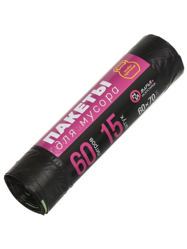 Пакеты для мусора 60 л, 15 шт, 21 мкм, особопрочные, с завязками, Марья Искусница