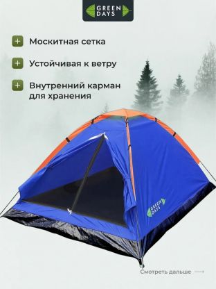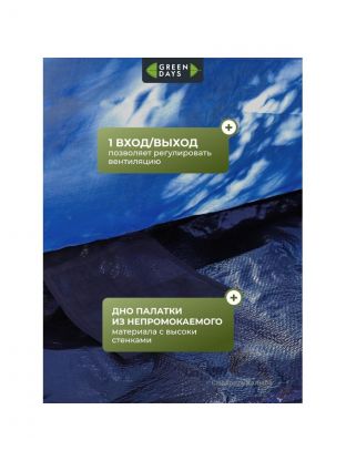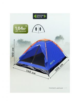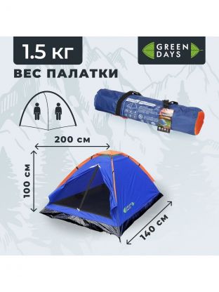 Палатка 2-местная, 200х140х100 см, 1 слой, 1 комн, с москитной сеткой, Green Days, GJH006