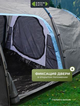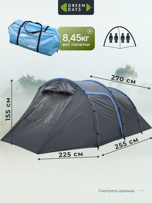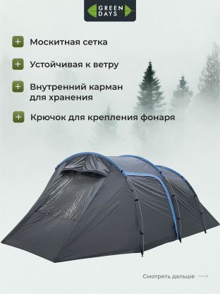 Палатка 4-местная, 255+225х270х155 см, 2 слоя, 1 комн, с москитной сеткой, Green Days, Tunel tent