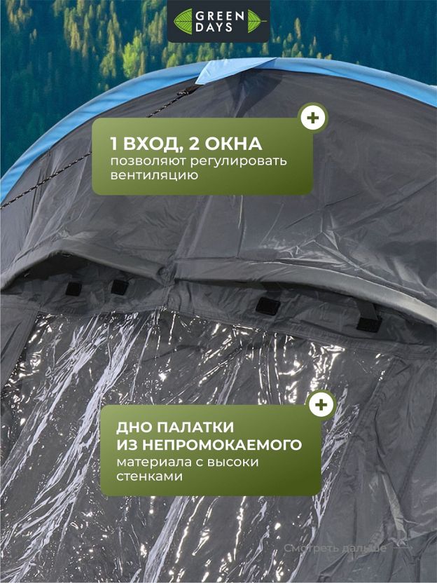 Палатка великолепно подойдет для комфортного использования во время путешествий или на пикнике и добавит удовольствия к вашему отдыху на природе. Высокая плотность материала обеспечивает сухую атмосферу внутри укрытия.