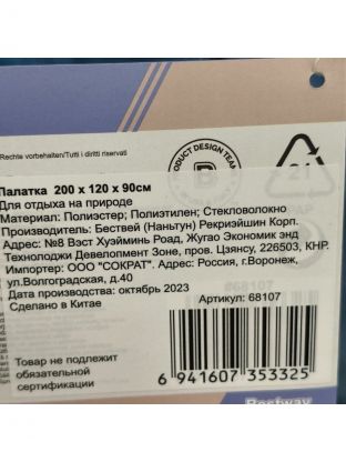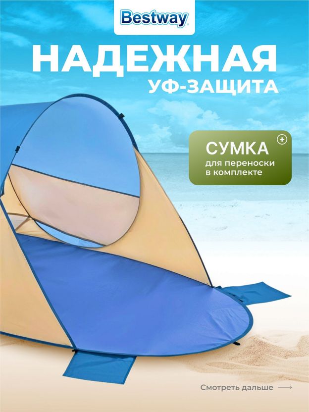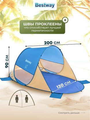 Палатка пляжная 2-местная, 200х120х90 см, 1 слой, 1 комн, Bestway, Beach Quick 2, 68107