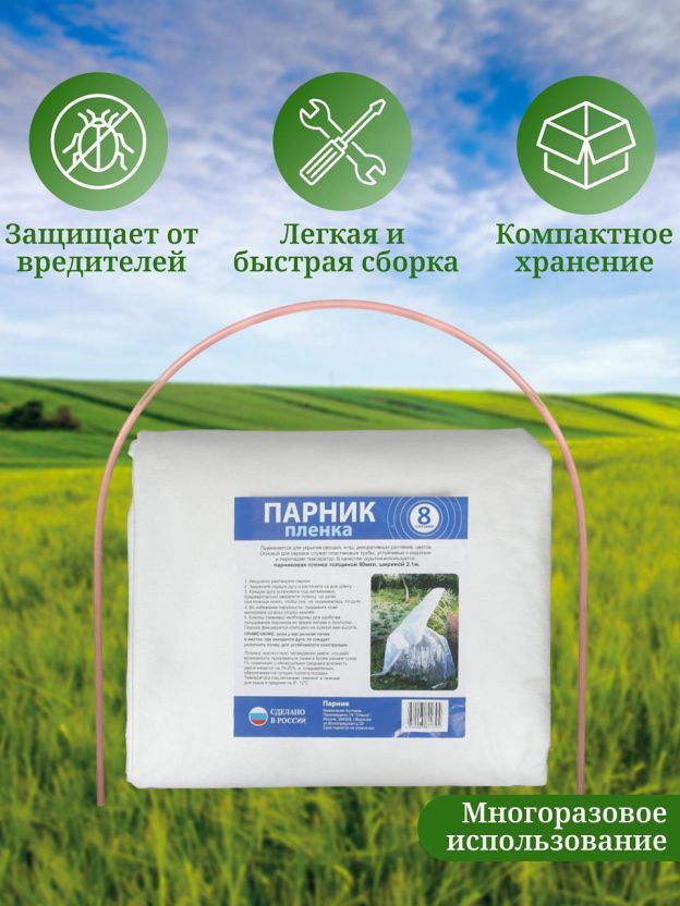 - Прочная защита: полиэтиленовая пленка 80 мкм гарантирует надежную защиту от погодных условий.