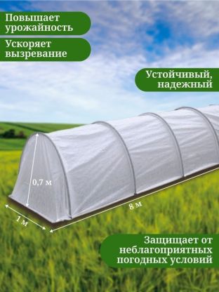 Парник 1х8х0.7 м, спанбонд, 42 г/м2, дуга 2.5 м, пластик, с клипсами, Эконом