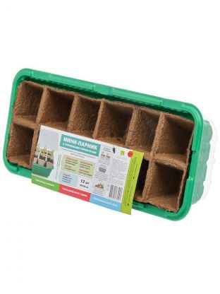 Парник-мини пластик, 12 торфяных горшочков 60х60 мм, ГазонCity