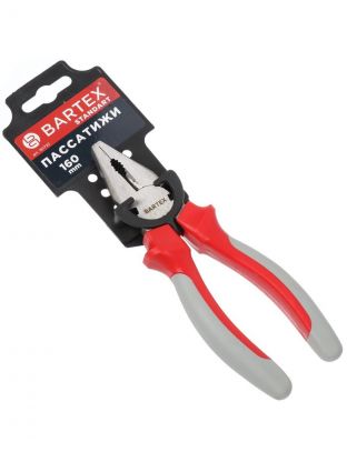 Пассатижи 160 мм, прямые, двухкомпонентный, углеродистая сталь, Bartex, Стандарт, 110012