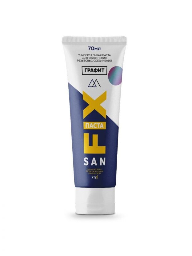 Универсальная уплотнительная паста SANFIX (графит) – вещество высокой вязкости серого цвета, в состав которого входит минеральное масло и наполнители, эмульгаторы, вода, а также консервант и ингибитор коррозии. Все компоненты пасты допускаются к использованию в пищевом производстве и промышленности. Уплотнительная паста SANFIX обеспечивает уплотнение резьбовых соединений различных типов сантехнических, водопроводных труб, в том числе с питьевой водой. Применяется совместно с льняными волокнами/нитью в системах водоснабжения и отопления с температурой рабочей среды до +140С.