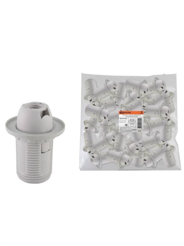 Патрон E14, TDM Electric, пластик, термостойкий, с кольцом, белый, SQ0335-0033