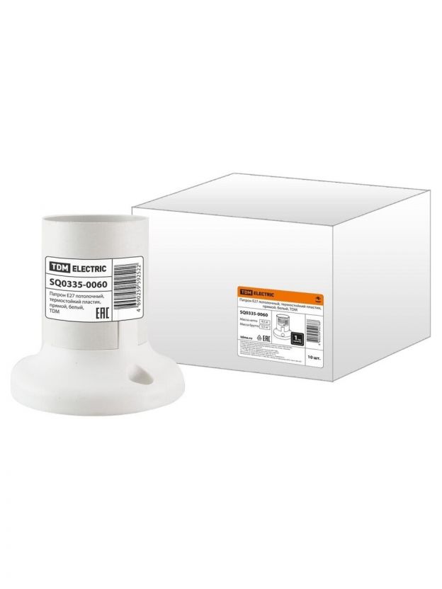 Патрон E27, потолочный, TDM Electric, пластик, термостойкий, прямой, белый, SQ0335-0060