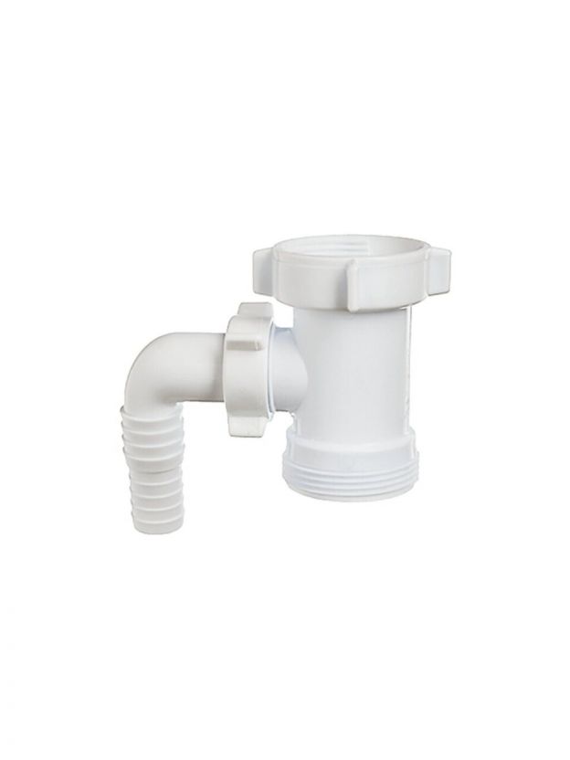 Пластиковый патрубок для сифона имеет один отвод для подключения слива от стиральной или посудомоечной машины. В комплекте есть заглушка на отвод и прокладка обратный клапан для предотвращения попадания сливаемой воды от подключённого аппарата в мойку.