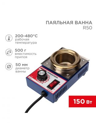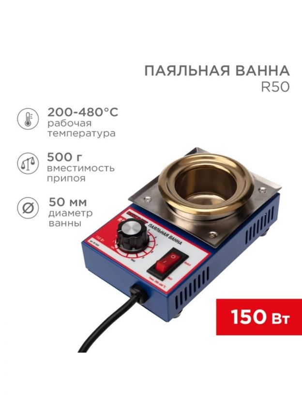 Паяльная ванна сетевая, 150 Вт, 230 В, d50мм, 200-480 °C, Rexant, R50, 09-9030