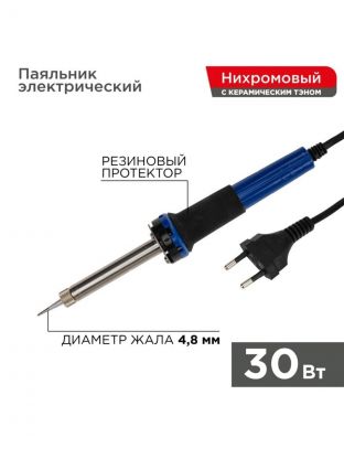 Паяльник сетевой, 300 Вт, 230 В, рукоятка пластик, долговечное жало, с керамическим нагревателем, Rexant, Мастер, 12-0122