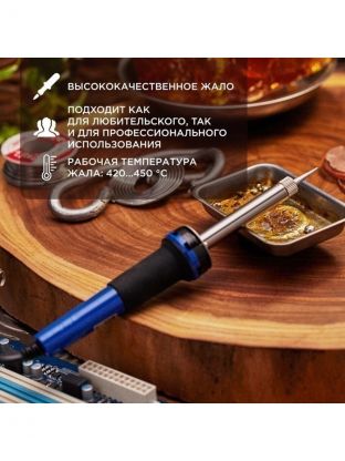 Паяльник сетевой Мастер Rexant 12-0122 — надежный инструмент для бытовых и профессиональных задач. Керамический нагреватель обеспечивает быструю и стабильную рабочую температуру жала 420-450 градусов, а долговечное жало гарантирует долгий срок службы. Мощность 300 Вт и удобная пластиковая рукоятка делают работу комфортной и эффективной. Отличный выбор для тех, кто ценит качество и надежность.