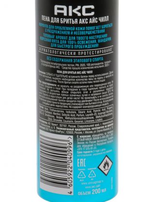 Пена для бритья АКС Ice Chill выпускается в объеме 200 мл. Продукт изготовлен на территории России.