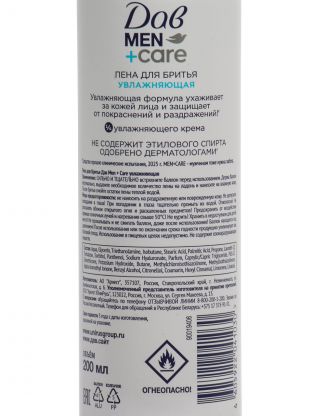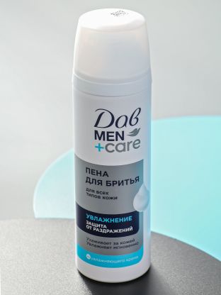 Увлажняющая пена Dove Men+Care защищает кожу от сухости и раздражения, облегчает скольжение бритвы и снижает риск микропорезов — особенно актуально для чувствительной кожи.