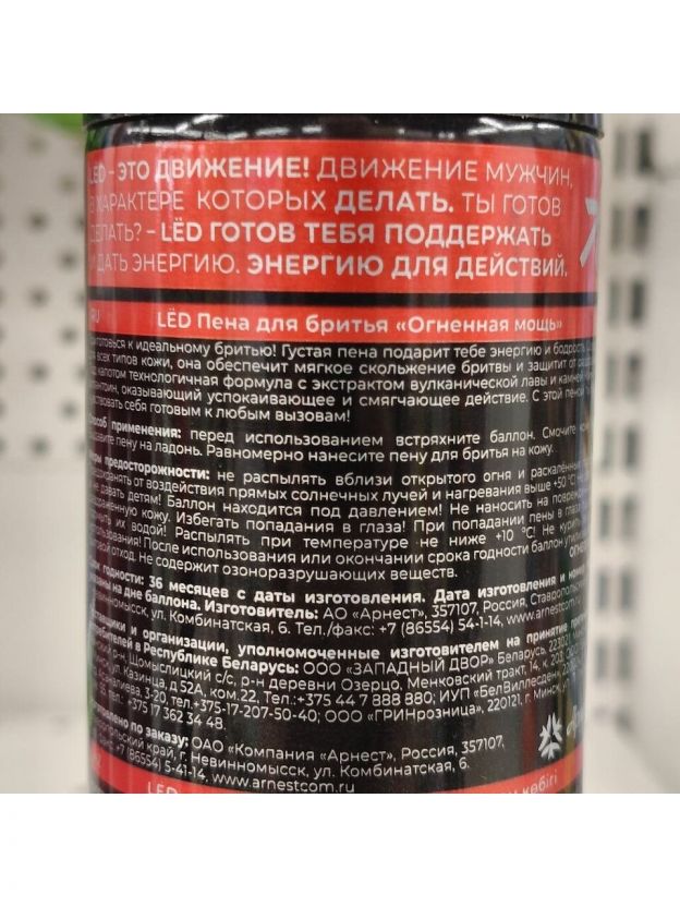 Ощутите силу огня с пеной для бритья LЁD "Огненная мощь", 240 мл. Это средство создано для тех, кто ценит комфорт и эффективность в одном флаконе. Уникальная формула обеспечивает легкое скольжение лезвия и защиту кожи от раздражения. Позвольте себе идеальное бритье. Преимущества: интенсивное увлажнение; защита от порезов; мгновенное успокоение кожи; легкость нанесения; подходит для всех типов кожи.