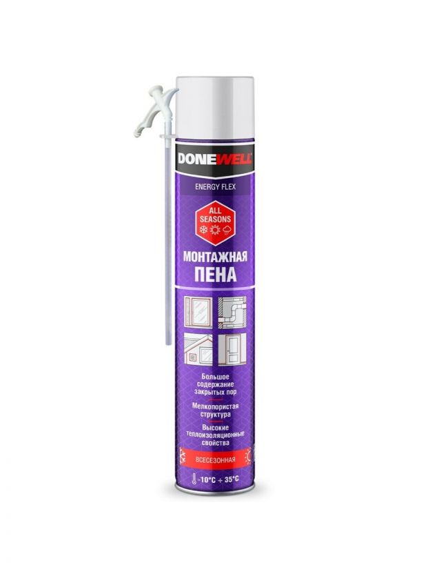 Пена монтажная KUDO, Donewell Energy Flex, бытовая, 30 л, 1 л, всесезонная, DPH10UAS