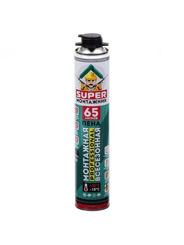 Однокомпонентная полиуретановая профессиональная монтажная пена, специально разработанная для работ при температурах от -10_С до +35_С при температуре баллона не ниже 16_С.
