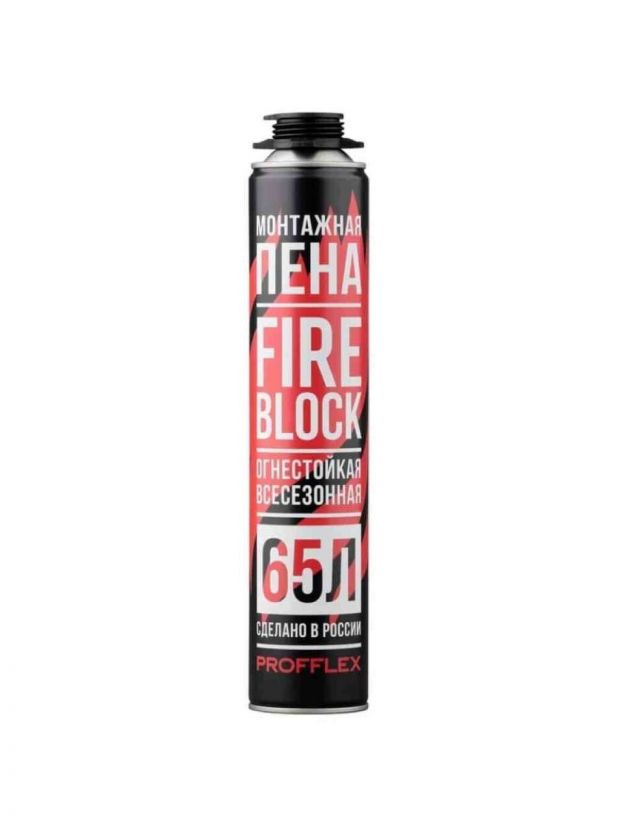 Пена монтажная Profflex, FireBlock, профессиональная, 65 л, 850 мл, 1 кг, огнестойкая, всесезонная