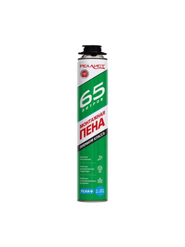 Пена монтажная Realist, PRO Green, профессиональная, 65 л, зимняя, 4602009041051