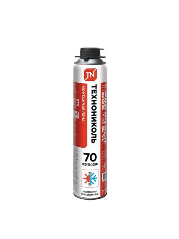 Пена монтажная Технониколь 70 Professional всесезонная представляет собой однокомпонентный полиуретановый материал в аэрозольной упаковке. Монтажная пена отличается активным первичным расширением, повышенным объемом выхода пены. Пена обладает хорошей адгезией к большинству строительных материалов, за исключением фторопласта, силикона и полиэтилена. Монтажная пена имеет специальную формулу, которая обеспечивает максимальный выход пены.
