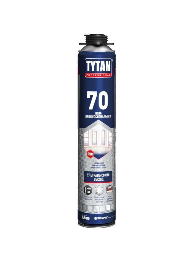 TYTAN Professional 70 - однокомпонентная саморасширяющаяся полиуретановая профессиональная монтажная пена, специально разработанная для работ при температурах от +5_С до +35_С. Пена имеет улучшенную производительность, обеспечивающую стабильно большой выход пены из баллона.