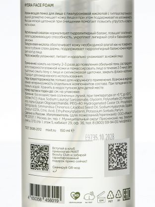 Пенка образует легкую воздушную текстуру, не сушит кожу, легко смывается, не оставляет пленки и обеспечивает длительное увлажнение благодаря гиалуроновой кислоте.