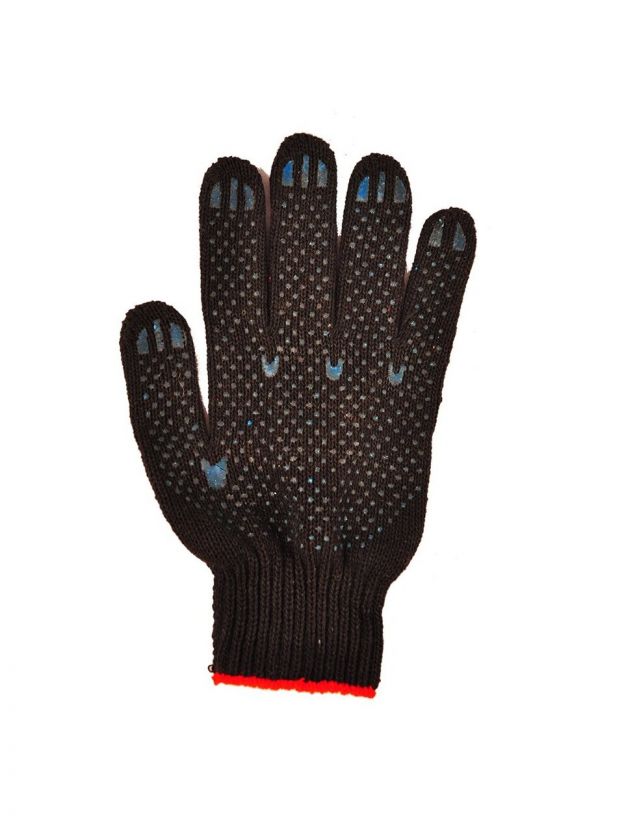 Перчатки х/б, ПВХ покрытие, точка, 7.5 класс вязки, 5 нитей, черная основа, Люкс