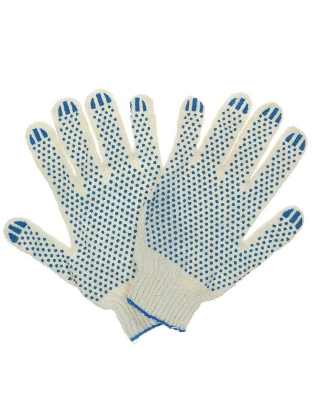 Перчатки х/б, ПВХ покрытие, точка, универсальный размер, 7.5 класс вязки, 4 нити, белая основа