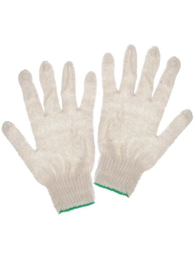 Перчатки х/б, без покрытия, без рисунка, 7.5 класс вязки, 3 нити, белая основа, Эконом
