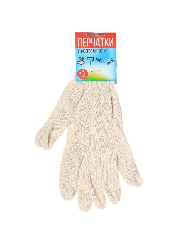 Перчатки х/б, без покрытия, без рисунка, универсальный размер, 7.5 класс вязки, 4 нити, белая основа, европодвес