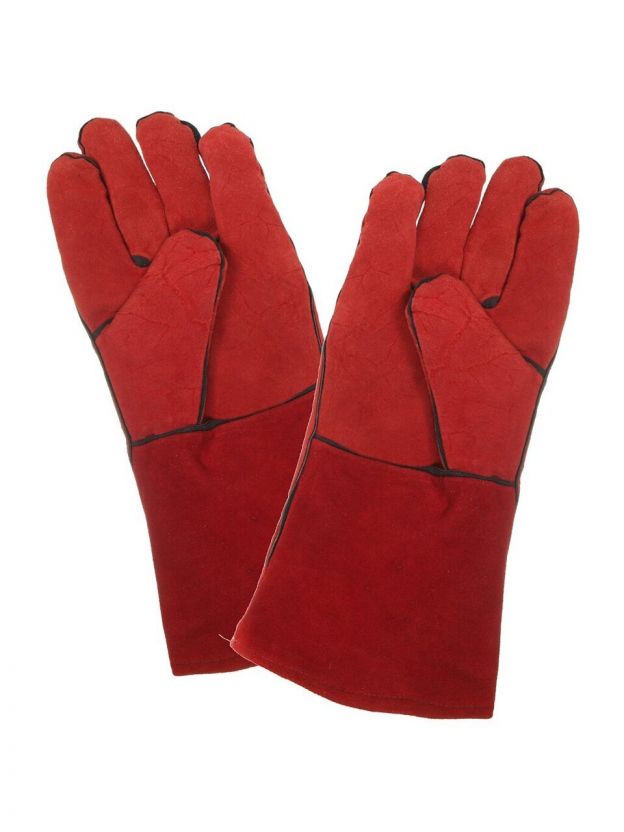 Перчатки-краги спилок, замша, без рисунка, 35 см, красная основа, с подкладкой, Трек Люкс