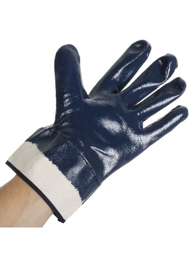 Перчатки маслобензостойкие "Золотая перчатка" с полным нитриловым покрытием — надежный выбор для строительных, универсальных, сборочных и садовых работ. Синяя основа и манжет-крага обеспечивают удобство и защиту в любых условиях. Прочная модель устойчива к маслам, бензину, кислотам и щелочам, подходит для всесезонного использования. Размер XL.