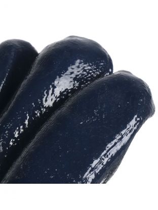 Перчатки маслобензостойкие, без рисунка, синяя основа, манжет крага, Нитрил, Золотая перчатка