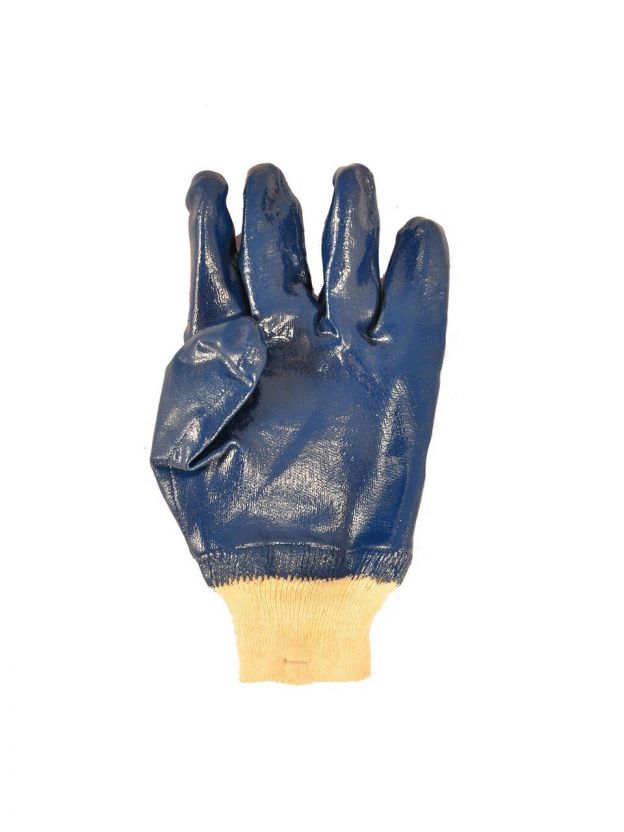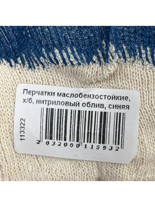 Перчатки маслобензостойкие, х/б, нитриловый облив, без рисунка, синяя основа, манжет-резинка