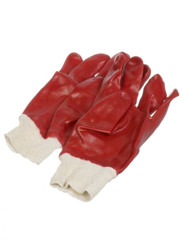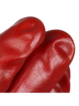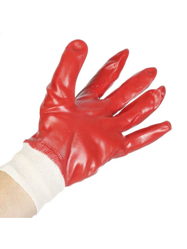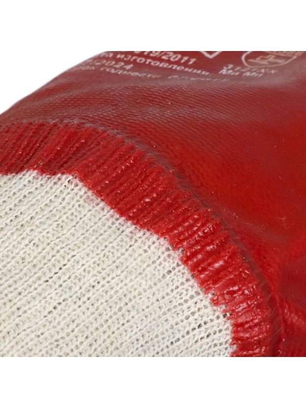 Перчатки маслобензостойкие, трикотаж, ПВХ покрытие, без рисунка, красная основа, Гранат, Золотая перчатка