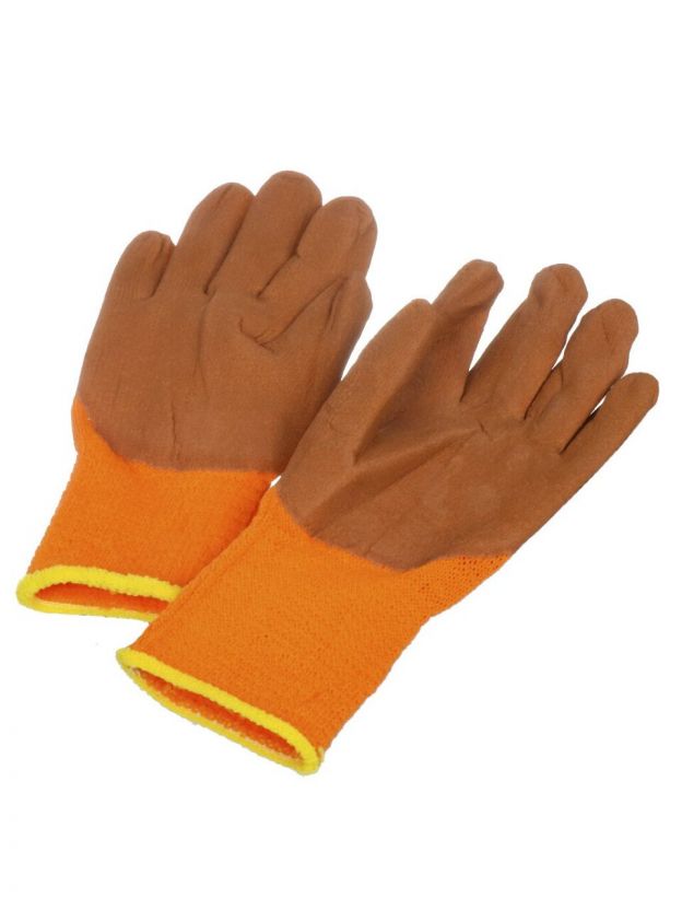 Перчатки обливные, без рисунка, оранжево-коричневая основа, утепленные, Золотая перчатка