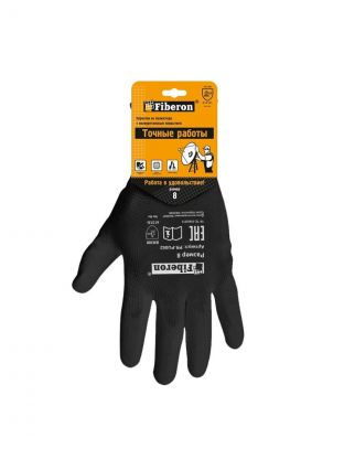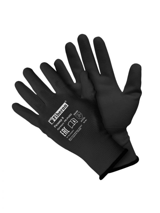 Перчатки полиэстер, без рисунка, размер 8 (M), черная основа, Fiberon, европодвес