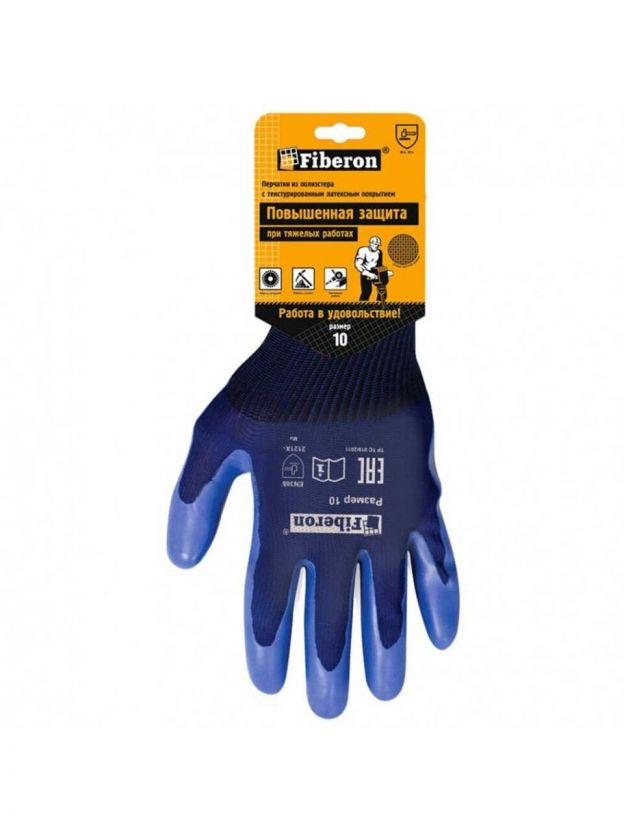 Перчатки полиэстер, латексный облив, протектор, размер 10 (XL), повышенная защита при тяжелых работах, Fiberon