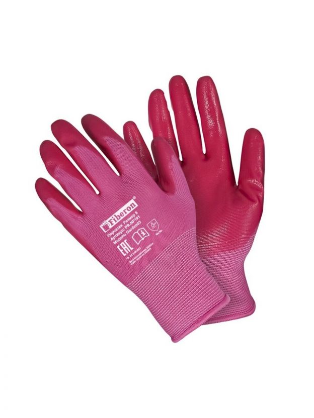 Перчатки полиэстер, нитриловый облив, без рисунка, размер 8 (M), цвет в ассортименте, Fiberon, европодвес