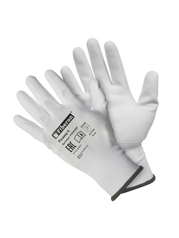 Перчатки полиэстер, полиуретановый облив, без рисунка, размер 9 (L), Fiberon, европодвес
