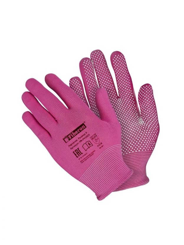 Перчатки полиэстер, точка, размер 9 (L), цвет в ассортименте, ПВХ-точка, Fiberon, европодвес