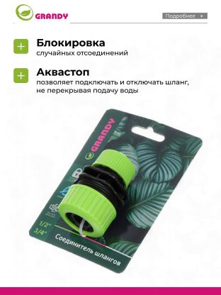 Ищете надежный и удобный переходник для шланга? Переходник Grandy JS-3036 станет отличным выбором для вашего сада или дачи. С его помощью вы сможете легко и быстро подключить шланги диаметром 1/2 и 3/4 дюйма, благодаря быстросъемной конструкции.