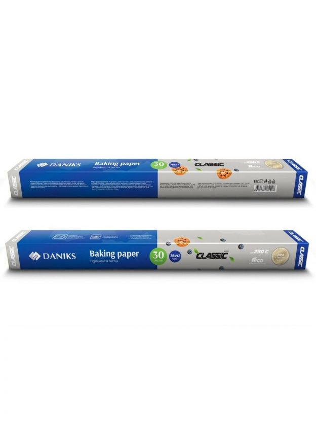 Пергамент для выпечки, 38 х 42 см, белый, 30 листов, силиконизированный, Daniks