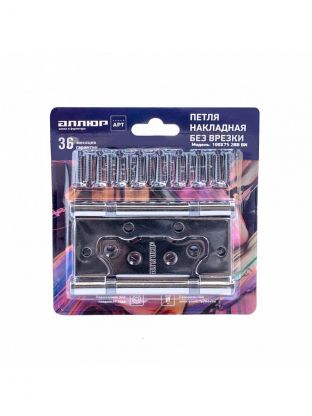 Петля накладная для деревянных дверей, Аллюр, 100х75х2.5 мм, универсальная, 2ВВ BN, 12162, 2 шт, блистер, черный никель