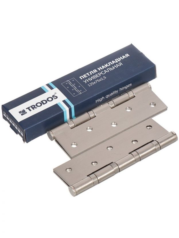 Петля накладная для деревянных дверей, Trodos, 125х75х2.5 мм, универсальная, 201025, никель