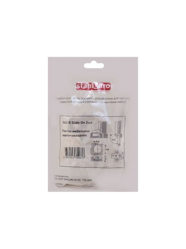 Петля полунакладная мебельная, StahlBuro, 362 Slide-On, 15 910, 2 штуки, хром