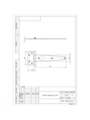 Петля-стрела для деревянных дверей, Кунгур, 210 мм, универсальная, ПС-210, 3531, оцинкованная